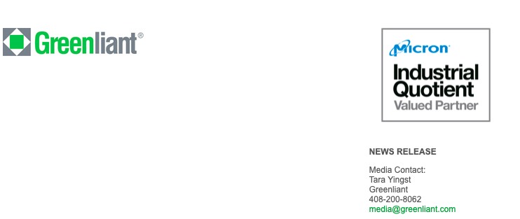 SANTA CLARA, CALIF. – FEBRUARY 25, 2020 – Greenliant is a founding member of the new Micron Industrial Quotient (IQ) Partner Program, a collaboration of industry-leading companies to meet the need for high-quality, robust, rugged and long-lasting Industrial IoT (IIoT) products. Membership in the Micron IQ Partner Program further reinforces Greenliant's focus on the embedded systems market and commitment to addressing the rigorous requirements of the industrial segment.