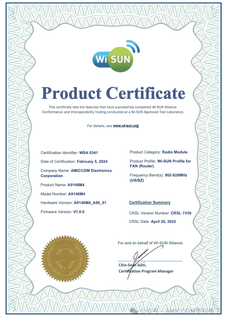 笙科電子的新一代的射頻晶片A9146M4已經成功通過WiSUN FAN 1.0認證。這一認證不僅標誌著我們在無線通訊領域的技術實力,更證明了我們對客戶提供高品質無線產品的承諾。WiSUN(Wireless Smart Utility Network)是一種專為物聯網(IoT)應用而設計的無線通訊標準。WiSUN聯盟是一個全球性組織,致力於推動WiSUN技術的標準化和推廣。WiSUN的應用非常廣泛,例如: 智慧能源網格(Smart Grid)、智慧城市(Smart Cities)、工業自動化(Industrial automation)、農業應用(Agricultural Applications)、智能家居(Smart Home) 。